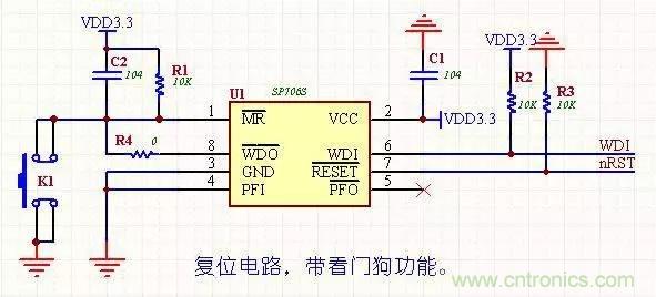 帶看門狗和手動(dòng)復(fù)位,價(jià)格便宜(美信的貴很多),R4為調(diào)試用,調(diào)試完后焊接好R4。