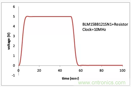 如果在數字電路中使用鐵氧體磁珠,則可能會發(fā)生波形中出現過沖和下沖的情況。(圖2)