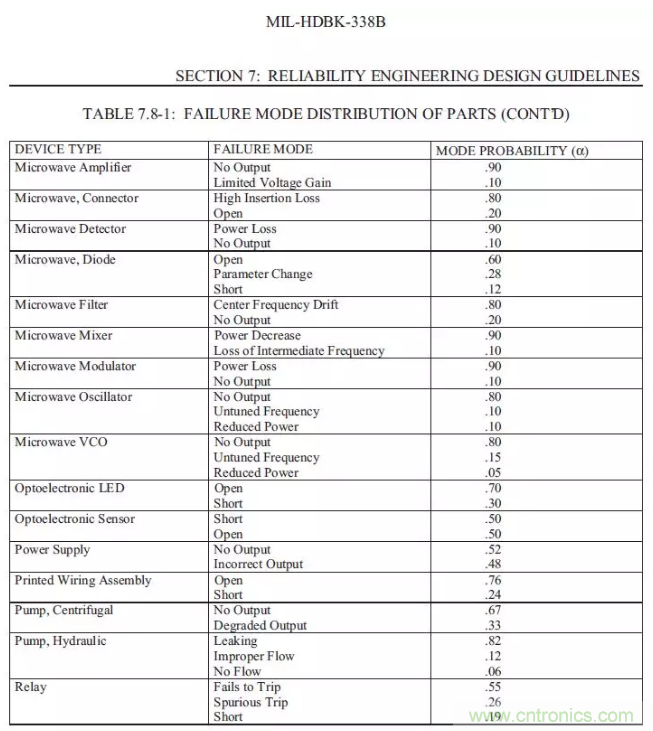 以下數(shù)字僅供參考,本身MIL-HDBK-338B是一份指導書性質的,所有的數(shù)字僅僅具有參考意義。