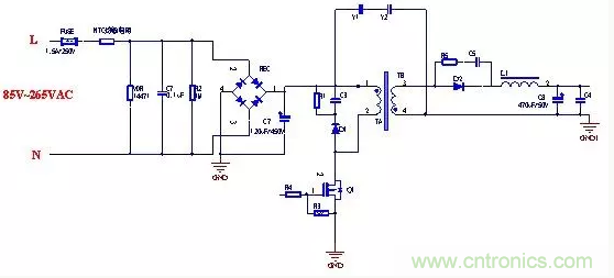 應(yīng)用很多隔離式開關(guān)電源在初級(jí)和次級(jí)上加Y電容是為了給次級(jí)的共模電流提供一個(gè)回路到初級(jí),減少共模電流對(duì)輸出的影響。Y電容串接在高壓地和低壓地之間,有時(shí)會(huì)采用兩個(gè)Y電容串聯(lián)是為了提高高壓地和低壓地之間之間的耐壓,有時(shí)候會(huì)出現(xiàn)耐壓不足的情況,導(dǎo)致安規(guī)電容打耐壓過不了,可以選用高壓陶瓷電容作為Y電容,Y電容通常接法有四種情況: