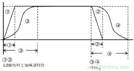 下圖是有無S 曲線時加減速特性對比。