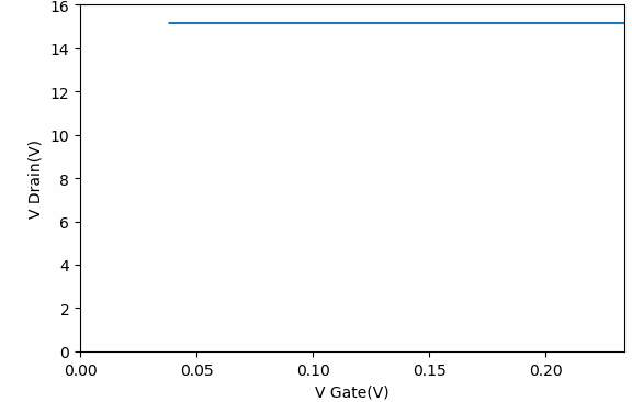 對(duì)于IRF450的擊穿電壓測試曲線,當(dāng)電壓超過600V的時(shí)候,漏極電流激增。這與該期間的數(shù)據(jù)手冊(cè)上標(biāo)稱的耐壓基本相當(dāng)。
