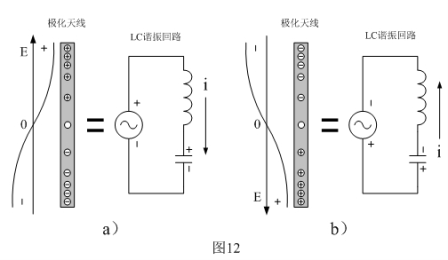 天線來回極化的工作原理可以等效成一個串聯(lián)諧振電路,當天線在電場力的作用下被極化帶電時,它又相當于一個電容在充電;當天線中的載流子在電場力的作用下來回移動時,它又相當于一個電感,并且在天線的周圍會產(chǎn)生磁場。