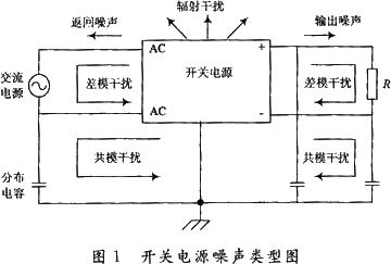 在開關(guān)電源中,主功率開關(guān)管在高電壓、大電流或以高頻開關(guān)方式工作下,開關(guān)電壓及開關(guān)電流的波形在阻性負載時近似為方波,其中含有豐富的高次諧波分量。由于電壓差可以產(chǎn)生電場、電流的流動可以產(chǎn)生磁場,以及豐富的諧波電壓電流的高頻部分在設(shè)備內(nèi)部產(chǎn)生電磁場,從而造成設(shè)備內(nèi)部工作的不穩(wěn)定,使設(shè)備的性能降低。同時,由于電源變壓器的漏電感及分布電容,以及主功率開關(guān)器件的工作狀態(tài)非理想,在高頻開或關(guān)時,常常產(chǎn)生高頻高壓的尖峰諧波振蕩,該諧波振蕩產(chǎn)生的高次諧波,通過開關(guān)管與散熱器問的分布電容傳人內(nèi)部電路或通過散熱器及變壓器向空間輻射。