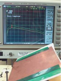 為了測量某給定材料的吸波性能,需要將其附著在SCRF裝置的金屬板上。通過和沒有附著吸波材料情況下測試裝置測量得到的數(shù)值相比,我們可以利用接收機直接測量到EMI反射的減小量。