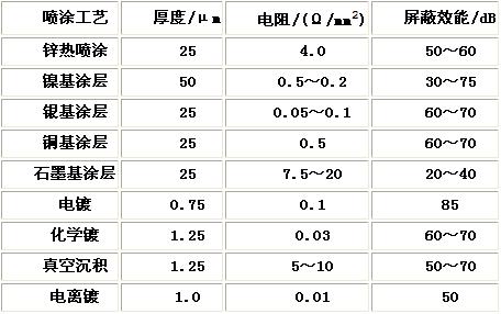 表3 幾種噴涂工藝達到的屏蔽效能