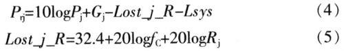 設(shè)發(fā)射系統(tǒng)的發(fā)射功率為Pc,單位為W;發(fā)射天線增益為Gc,單位為dB;發(fā)射距離為Rc,單位為km;信號傳輸損耗為Lost_r_R,單位為dB;信號頻率為fc,單位為MHz。發(fā)射信號到達(dá)接收系統(tǒng)的功率為:
