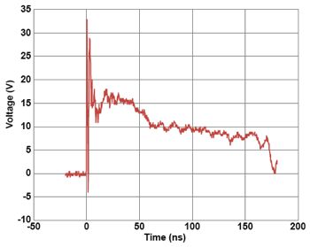 安森美半導(dǎo)體的ESD鉗位性能備受業(yè)界推崇,鉗位性能可從幾種方法觀察和量化。使用幾個標(biāo)準(zhǔn)工具即可測量獨立ESD保護器件或集成器件的ESD鉗位能力,包括ESD保護功能。第一個工具是ESD IEC61000-4-2 ESD脈沖響應(yīng)截圖,顯示的是隨時間推移的鉗位電壓響應(yīng),可以看出ESD事件中下游器件的情形。