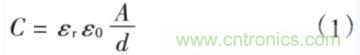 式(1)顯示,減小電容器極板之間的距離(d)和增加極板的截面積(A)將增加電容器的電容量。電容通常存在等效串聯(lián)電阻(ESR)和等效串聯(lián)電感(ESL)二個寄生參數。