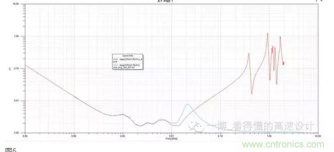 第四條,封裝電容和Die電容這里不做太多描述,只給出一個(gè)實(shí)際案例,圖5是某芯片,Die電容大小為2071NF。能看到Die電容起作用之后,30M以上的PDN阻抗基本完全被壓下來了。也就是說,30M以上的電源噪聲,進(jìn)入芯片之后被Die電容濾除。系統(tǒng)設(shè)計(jì)時(shí)不需要考慮這個(gè)頻段以上的濾波。