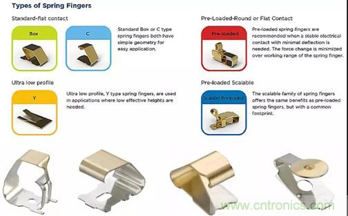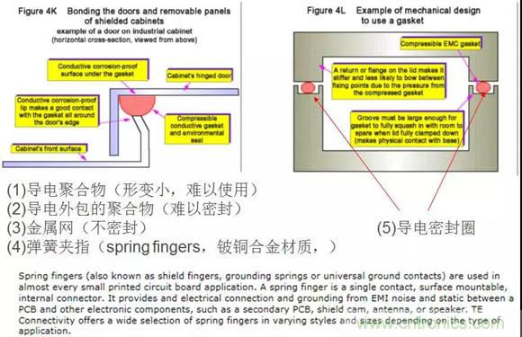 要達(dá)到40dB的SE,通常需要用導(dǎo)體墊圈、彈簧夾指來進(jìn)行密封,注意內(nèi)部元件與屏蔽罩的間距、數(shù)據(jù)總線與開孔和縫隙之間的距離。