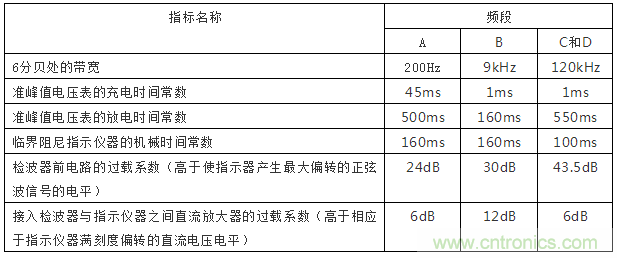 表5:騷擾測量儀峰值測量時的指標(biāo)