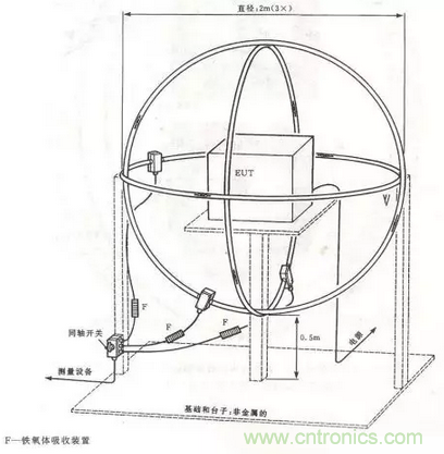 輻射發(fā)射測試時,測量天線接收到的騷擾強場包括兩個部分,一部分是EUT內(nèi)部的導(dǎo)線和電路直接通過機箱殼體的縫隙向外的輻射,稱殼體輻射,另一部分是由外接電纜引出的共模電流輻射。替代法測試的目的是僅僅測試EUT的殼體輻射,所以要求拆除所有可以拆卸的電纜,不能拆卸的電纜上要加鐵氧體磁環(huán),并放在不會影響測量結(jié)果的位置上。