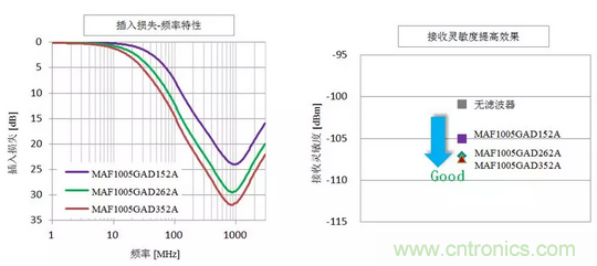 圖7:MAF系列的插入損失-頻率特性與接收靈敏度的改善效果