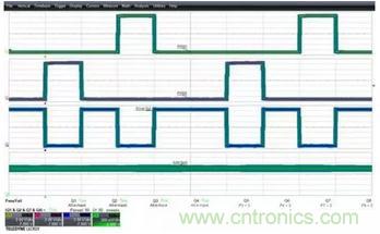 下圖3顯示的是關閉模板后示波器采集到的數(shù)據(jù)信號,每個信號的波形形狀可以被清晰的顯示和觀察。示波器基于通道2的邊沿觸發(fā),所有4個波形同時被捕獲。