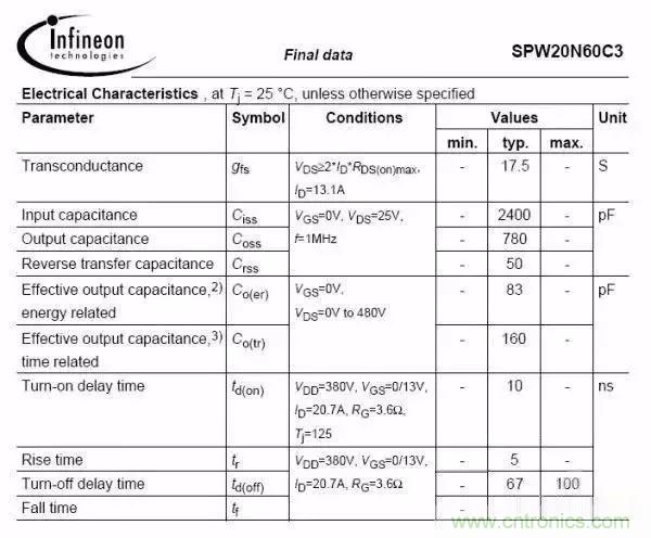 參照以上兩圖,是不同型號(hào)的MOS管,對(duì)比下輸入結(jié)電容和輸出結(jié)電容,2400PF與800PF;780PF與2200PF;一看就知道第一個(gè)規(guī)格是快管,第二個(gè)是慢管,這時(shí)候決定開關(guān)速度還要與驅(qū)動(dòng)電阻匹配;常規(guī)情況驅(qū)動(dòng)電阻在10R-150R比較多,選取驅(qū)動(dòng)電阻與結(jié)電容有關(guān),針對(duì)快板驅(qū)動(dòng)電阻可適當(dāng)增大,慢管驅(qū)動(dòng)電阻可適當(dāng)減小;