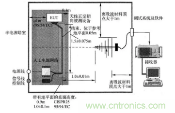 圖4:CISPR25標(biāo)準(zhǔn)要求的輻射發(fā)射測(cè)試布置圖