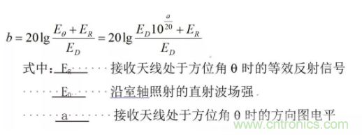 將接收天線轉(zhuǎn)到比最大電平低a(dB)的方位角q時(shí),則所接收的直射信號(hào)Eq=ED10a/20。當(dāng)反射信號(hào)與直射信號(hào)同相時(shí)合成場(chǎng)最大,這時(shí)以b表示: