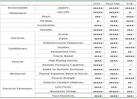 與其它集成技術(shù)相比,LTCC具有以下特點(diǎn):