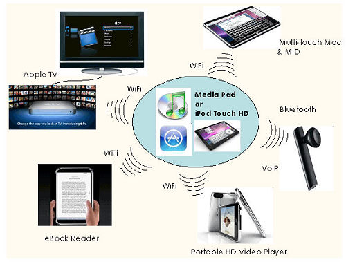 預(yù)想蘋果Media Pad或iPod Touch HD的應(yīng)用與定位(來源:拓墣產(chǎn)業(yè)研究所,2009/5)