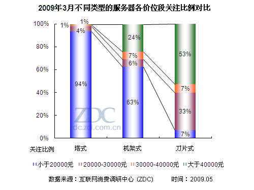(圖)2009年3月不同類型的服務(wù)器各價(jià)位段關(guān)注比例對(duì)比