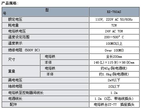 新開發(fā)的長壽焊嘴發(fā)熱芯一體型焊嘴,適用于大熱容量無鉛焊錫。RX-760AS能在 200-500℃大范圍進行溫度設(shè)定,數(shù)字顯示設(shè)定溫度,溫度設(shè)定簡單、精確。采用新設(shè)計的焊嘴發(fā)熱芯一體型焊嘴,大熱負荷時,快速升溫。亦可在較低溫度下作業(yè),減少對小型電子元件的熱沖擊。焊嘴部裝有溫度傳感器,精確測定焊嘴溫度。