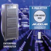 MAX3627和MAX3629具有優(yōu)異的電源噪聲抑制(PSNR),能夠最大程度地減小嘈雜電源對抖動性能的影響,使系統(tǒng)整體抖動指標的劣化最小,提高系統(tǒng)時鐘設計的質(zhì)量,同時也節(jié)省了電路板空間和成本。MAX3627/MAX3629可理想用于以太網(wǎng)接口,例如:企業(yè)交換機、路由器及其它需要低抖動以太網(wǎng)時鐘的高速數(shù)據(jù)通信系統(tǒng)等。