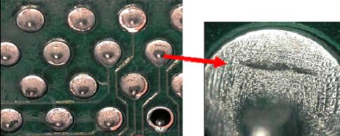 冷焊點出現(xiàn)的原因可能有幾點:例如焊接頭溫度過低、焊劑強度不夠或焊線中焊劑不足。