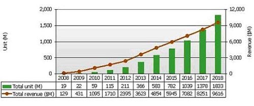 - E-Paper面板產(chǎn)值將由2009年的4億美元成長(zhǎng)到2015年的60億美元;并將在2018年接近百億美元