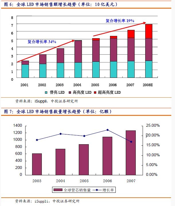 - 2008年高亮度和超高亮度LED市場(chǎng)年平均增長(zhǎng)率將達(dá)到20%左右
