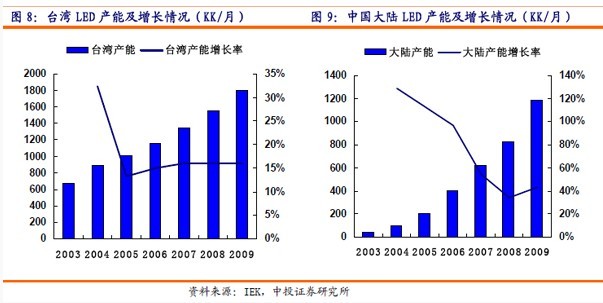 中國(guó)國(guó)內(nèi)的藍(lán)光芯片產(chǎn)能已經(jīng)超過韓國(guó),成為日本、臺(tái)灣之后的第三大生產(chǎn)國(guó),總體產(chǎn)能為臺(tái)灣的34%。