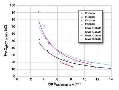 FOM=RDS(ON)×QgRDS(ON)直接與傳導(dǎo)損耗有關(guān),而Qg直接與開關(guān)損耗有關(guān)。FOM越小,性能越好。圖3顯示了低電壓MOSFET工藝發(fā)展中FOM的進(jìn)步。對于2004年實(shí)施的PowerTrench3而言,最好的FOM是240,而今天的PowerTrench5硅工藝中最好的FOM是126。