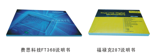 福祿克287里一個(gè)塑料袋也沒(méi)有,估計(jì)是本著環(huán)保理念,可是16國(guó)語(yǔ)言說(shuō)明書(shū)厚厚一本,有用的只有1/16,看來(lái)理念不統(tǒng)一,但你可用來(lái)學(xué)語(yǔ)言。費(fèi)思FT368手冊(cè)是中文,編寫(xiě)很細(xì)很專業(yè)。