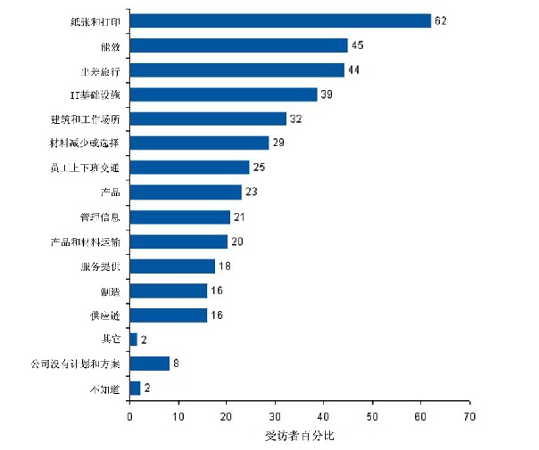 大多數(shù)企業(yè)都集中在相對容易、方便并熟悉的方面來提高能效、減少溫室氣體排放,如在節(jié)約用紙,減少差旅及IT基礎(chǔ)設(shè)施上。這些舉措有時能解決企業(yè)的實質(zhì)問題,有時卻不能解決實質(zhì)問題。但本質(zhì)上,這些舉措都與優(yōu)先次序沒有多大關(guān)系。IT企業(yè)需在能效和減少溫室氣體排放方面采取更為綜合的舉措。