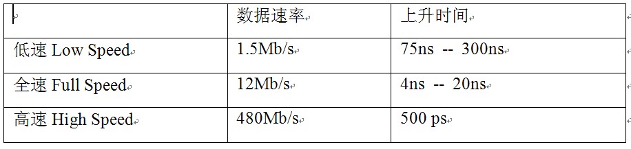 USB2.0是一種4線串行系統(tǒng),包括VBus,D-,D+和地線,D-和D+是數(shù)據(jù)傳輸線,VBus和地線傳輸5V電壓。按照功能的不同,USB2.0產(chǎn)品可分為主機(jī)(Host)、設(shè)備(Device)和集線器(Hub)三大類。還可以根據(jù)供電方式的不同將USB2.0設(shè)備分為總線供電(從主機(jī)汲取電流)和自供電兩種方式。為了適應(yīng)不同類型應(yīng)用對(duì)數(shù)據(jù)傳輸速度的要求,USB2.0定義了三種速率級(jí)別,分別是:
