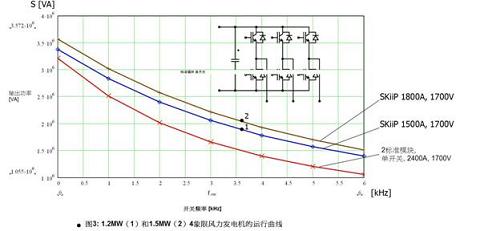 如果采用了更強(qiáng)大的SKiiP模塊,如使用氮化鋁作為陶瓷基板的SKiiP1.8kA,1.7kV,可從三相逆變器獲得更高的功率,即1800kVA。