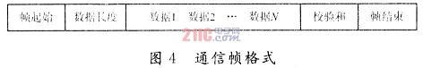 單片機(jī)與PC端的數(shù)據(jù)通信需要設(shè)計一個通信協(xié)議,采用同步通信方式進(jìn)行。將通信協(xié)議分成命令幀、應(yīng)答幀和數(shù)據(jù)幀三種格式。每種幀都包含有起始字節(jié)、數(shù)據(jù)長度、校驗(yàn)字節(jié)和幀結(jié)束字節(jié)。具體格式如圖4所示。