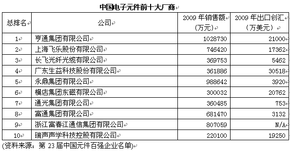 第23屆中國元件百強企業(yè)名單于2010年6月22日公布。從本次百強企業(yè)的評選結(jié)果,以及中國電子元件行業(yè)協(xié)會(下簡稱中電元協(xié))公布的數(shù)據(jù)上可以看出,在經(jīng)歷了全球經(jīng)濟危機之后,中國電子元件行業(yè)正在穩(wěn)步復蘇,眾多元件企業(yè)正在積極尋求在“后危機時代”的生存和發(fā)展之道。
