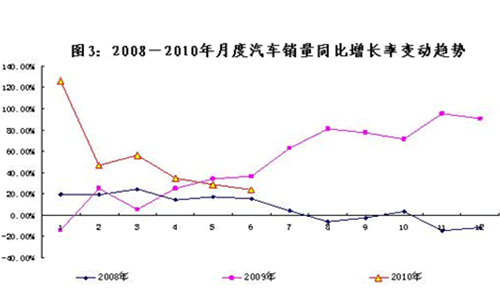 2010年上半年,汽車產(chǎn)銷市場增速自3月以來呈逐月回落態(tài)勢,但總體保持較高增長勢頭;汽車行業(yè)整體經(jīng)濟效益保持良好的發(fā)展態(tài)勢。