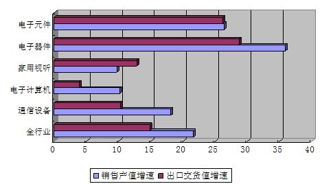 2011年,我國電子信息制造業(yè)均開局良好,呈現(xiàn)平穩(wěn)增長的態(tài)勢,前兩個月增加值增長14.3%,比工業(yè)平均水平高0.2個百分點;實現(xiàn)銷售產(chǎn)值9706億元,同比增長21.6%。
