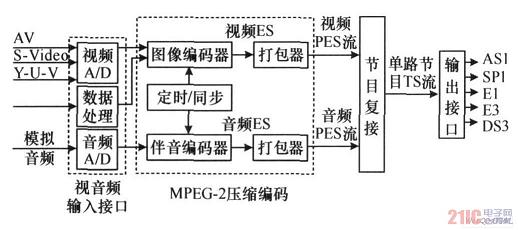 經(jīng)過(guò)信源編碼后的圖像信號(hào)送入多路復(fù)用器中與數(shù)字音頻信號(hào)進(jìn)行多路復(fù)用,然后送入信道編碼器。