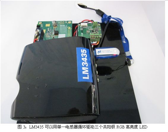 針對便攜式投影儀的單電感RGB循環(huán)模式2A LED驅(qū)動器LM3435也是美國國家半導(dǎo)體在本屆廣州照明展上重點推出的產(chǎn)品。LM3435可以用單一電感器循環(huán)驅(qū)動三個共陽極RGB高亮度LED,這是LM3435最大的特點。