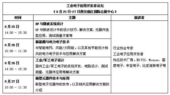- 8月25日-27日“工業(yè)電子應用開發(fā)者論壇”登錄西安