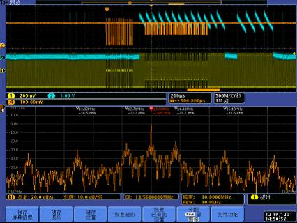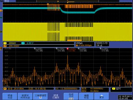下面我們以一個13.56MHz的RFID讀寫器系統(tǒng)為例,介紹MDO4000的跨域調(diào)試應用。