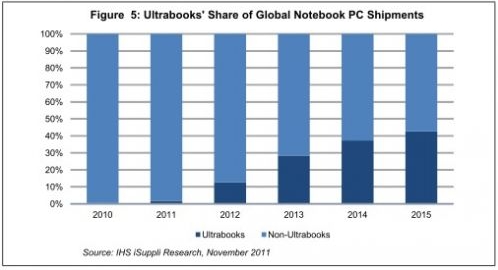 近日消息,據(jù)外媒報(bào)道,根據(jù)IHS iSuppli公司計(jì)算平臺(tái)部門的研究報(bào)告顯示,為了抵擋媒體平板日益增強(qiáng)的威脅,移動(dòng)PC市場(chǎng)正在力推新型超級(jí)本平臺(tái),預(yù)計(jì)其出貨量到2015年將占到整體筆記本市場(chǎng)的40%以上。