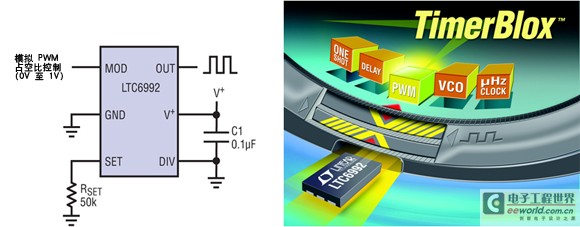 凌力爾特公司最近推出了一個(gè)基于硅振蕩器的定時(shí)器件新系列,即 TimerBloxTM 系列。這些器件含有智能電路,可提供 5 種基本定時(shí)功能:電壓控制振蕩器 (VCO)、面向長(zhǎng)持續(xù)時(shí)間定時(shí)的非常低頻率時(shí)鐘、脈沖寬度調(diào)制振蕩器 (PWM)、單脈沖發(fā)生器和延遲構(gòu)件。作為一個(gè)系列,這些器件涵蓋了 29uHz (9.5 小時(shí)) 至 2MHz 的工作范圍,具有 98% 或更高的典型頻率或時(shí)間準(zhǔn)確度。每個(gè) TimerBlox 器件提供 8 種單獨(dú)的工作頻率 / 時(shí)間范圍,可用一個(gè)簡(jiǎn)單的電阻分壓器進(jìn)行選擇。一旦范圍選定,那么用戶就可以用 25kΩ 至 800kΩ 的單個(gè)電阻器設(shè)定準(zhǔn)確的頻率或時(shí)間。這種架構(gòu)允許 TimerBlox 系列器件涵蓋很寬的工作范圍,同時(shí)確保電阻器尺寸對(duì)總體準(zhǔn)確度或功耗產(chǎn)生的影響可以忽略不計(jì) (通過設(shè)定電流產(chǎn)生的雜散電流和功耗可以忽略不計(jì))。TimerBlox 系列器件在 2.25V 至 5.5V 的電源電壓范圍內(nèi)工作,電源電流范圍為 60uA 至 250uA,而且 TimerBlox 器件提供快速、首周期準(zhǔn)確的啟動(dòng)。20mA 輸出提供和吸收能力允許直接驅(qū)動(dòng)光隔離器和變壓器,以實(shí)現(xiàn)電氣隔離。TimerBlox 系列器件采用 SOT23 和纖巧的 DFN 封裝,所有器件都可在 -40°C 至 125°C 的溫度范圍內(nèi)工作。所有這些特色都是為了確保 TimerBlox 系列器件提供最簡(jiǎn)單、靈活和可編程的定時(shí)解決方案。采用這些器件,設(shè)計(jì)師就不會(huì)面對(duì)利用 RC 電路實(shí)現(xiàn)定時(shí)器或提供時(shí)鐘時(shí)所需的無情選擇了。RC 電路的作用現(xiàn)在可以縮回到一種更適中的水平,人們不再期望用 RC 電路應(yīng)對(duì)“真正嚴(yán)重的定時(shí)問題”了。