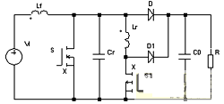 在每次主開關管S導通前,先導通輔助開關管S1,使輔助諧振網(wǎng)絡諧振。當S兩端電容電壓諧振到零時,導通S。當S完成導通后,立即關斷S1,使輔助諧振 電路停止工作。之后,電路以常規(guī)的PWM方式運行。該拓撲結構在不增加電壓/電流應力的情況下,實現(xiàn)了S的零電壓導通和D的零電流關斷。但由于S1是在大 電流(接近諧振峰值電流)下關斷、大電壓(接近輸出電壓)下開通, S1處于一種非常不好的硬開關環(huán)境。
