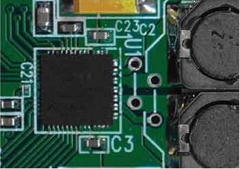 與裸露焊盤相接的敷銅塊應(yīng)該用多個過孔連到PCB背面的其他敷銅塊上,并應(yīng)該在滿足系統(tǒng)信號走線的要求下具有盡可能大的面積。加寬所有與器件的連線,這將有益于改善系統(tǒng)的散熱性能。雖然IC的引腳并不是主要的散熱通道,但實際應(yīng)用中仍然會有少量發(fā)熱。圖3所示的PCB中,寬連線將D類放大器的輸出與圖右側(cè)的兩個電感相連。在這種情況下,電感的銅芯繞線也可為D類放大器提供額外的散熱通道。雖然對整體熱性能的改善不到10%,但這樣的改善卻會給系統(tǒng)帶來兩種截然不同的結(jié)果—系統(tǒng)具備較理想的散熱或出現(xiàn)較嚴(yán)重的發(fā)熱。