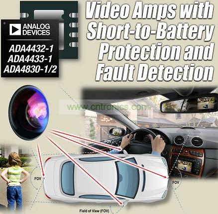 Analog Devices, Inc. ,全球領先的高性能信號處理解決方案供應商,最近推出一系列高速視頻放大器ADA4830-1/2和ADA4432-1/33-1,這些器件集成電池短路保護和故障檢測功能,適合汽車安全和信息娛樂應用中的模擬視頻系統(tǒng)。ADI公司的這些新款集成式視頻放大器采用3mm x 3mm封裝,與完全分立式解決方案相比,電路板空間至少節(jié)省80%,非常適合后視攝像頭等空間受限的應用。ADA4830-1(單通道)和ADA4830-2(雙通道)視頻差動放大器以及ADA4432-1(單端輸出)和ADA4433-1(差分輸出)模擬視頻濾波器放大器為設計人員提供了通過屏蔽和非屏蔽雙絞線電纜傳輸模擬視頻信號的完整芯片組。以上視頻放大器也可單獨使用,以作為視頻信號鏈一部分來提供接收機(ADA4830-1/2)和發(fā)射機(ADA4432-1/33-1)功能。所有這些新款放大器均內置最高18 V的電池短路保護、接地短路保護、故障檢測、寬共模電壓范圍和魯棒的ESD(靜電放電)性能。