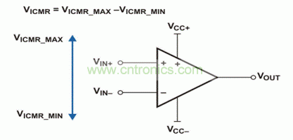 用于描述運(yùn)算放大器輸入的另一個(gè)術(shù)語(yǔ)是“輸入共模范圍”(VICMR),或者更準(zhǔn)確的說(shuō)是“輸入共模電壓范圍”。它是許多產(chǎn)品說(shuō)明書(shū)中經(jīng)常用到的一個(gè)參數(shù),同時(shí)也是廣大電路設(shè)計(jì)人員最為關(guān)心的一個(gè)參數(shù)。VICMR定義了運(yùn)算放大器器件正確運(yùn)行所需的共模輸入電壓“范圍”,并描述了輸入與每個(gè)電源軌的接近程度。
